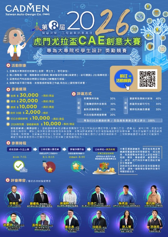 決賽暨頒獎典禮:於2026第34屆虎門科技 CAE 技術大會頒獎